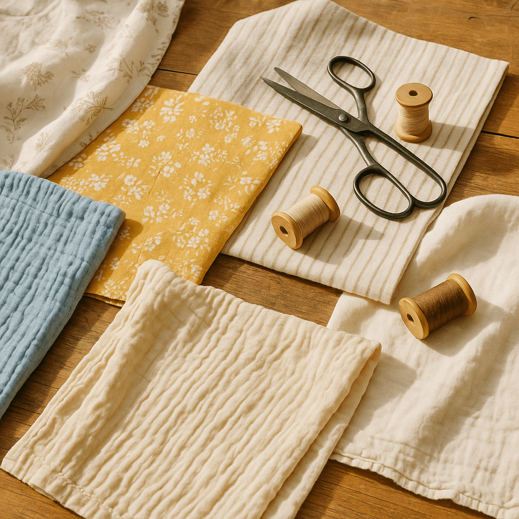 | Draps anciens | En coton, ces tissus sont doux mais robustes! Parfaits pour les bricolages douillets. 😊 |
